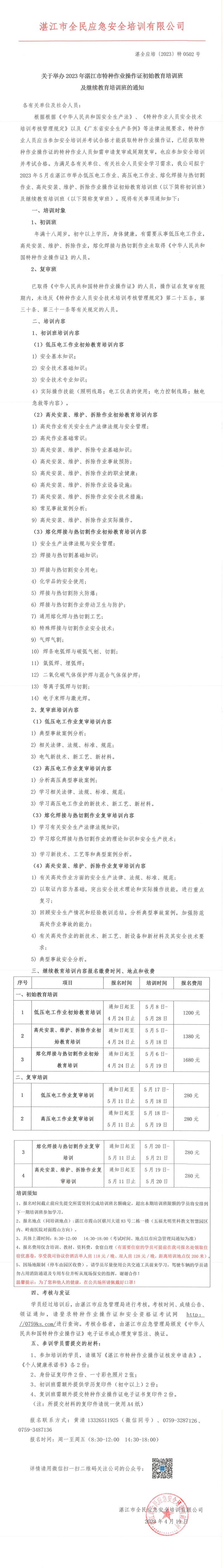 2023年5月低壓電工、高壓電工、熔化焊接與熱切割作業、高處作業初始教育培訓班及繼續教育培訓班的通知