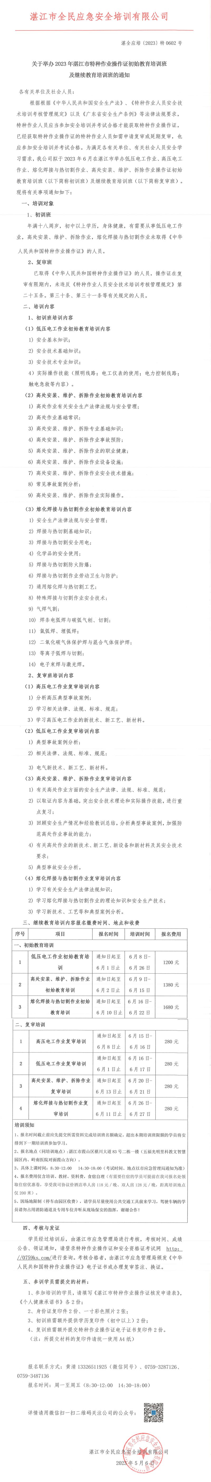 2023年6月低壓電工、高壓電工、熔化焊接與熱切割作業、高處作業初始教育培訓班及繼續教育培訓班的通知